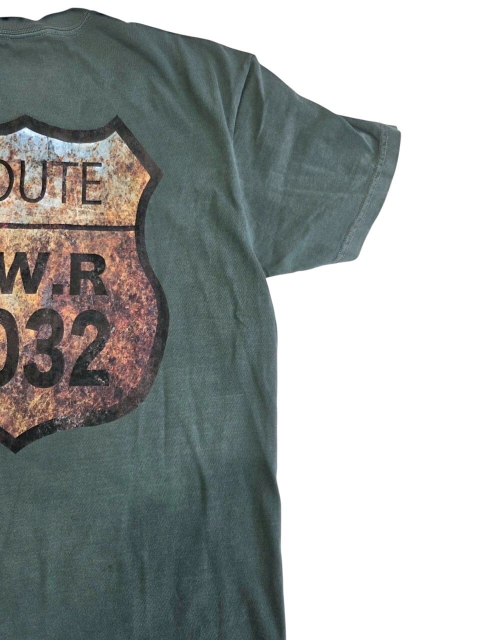 ヴィンテージ感あるボディにROUTE TWR 1032のプリントがかっこいい半袖Tシャツです。