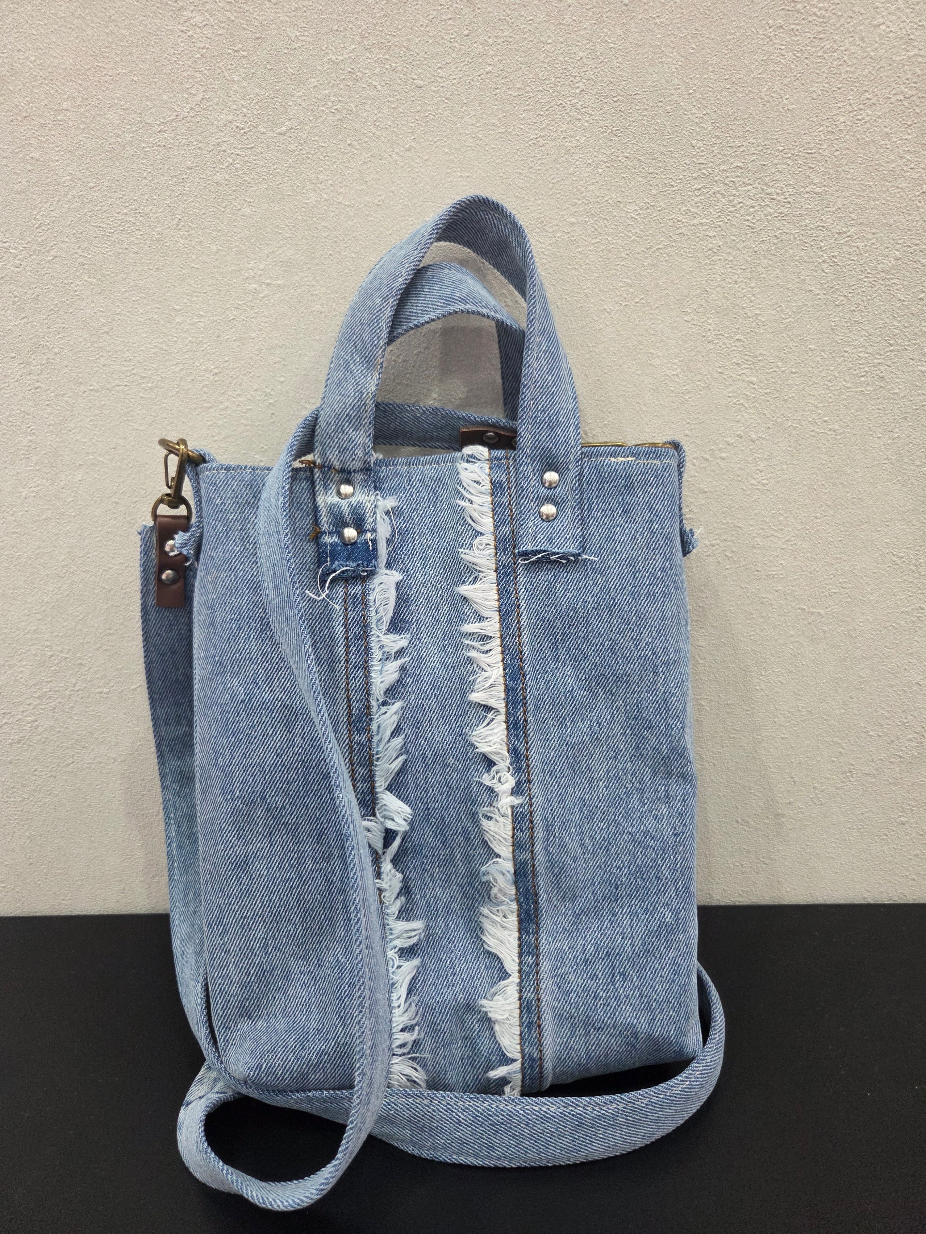 フリンジダメージとデニムのポケットを生かした斜めかけのミニBAGです!