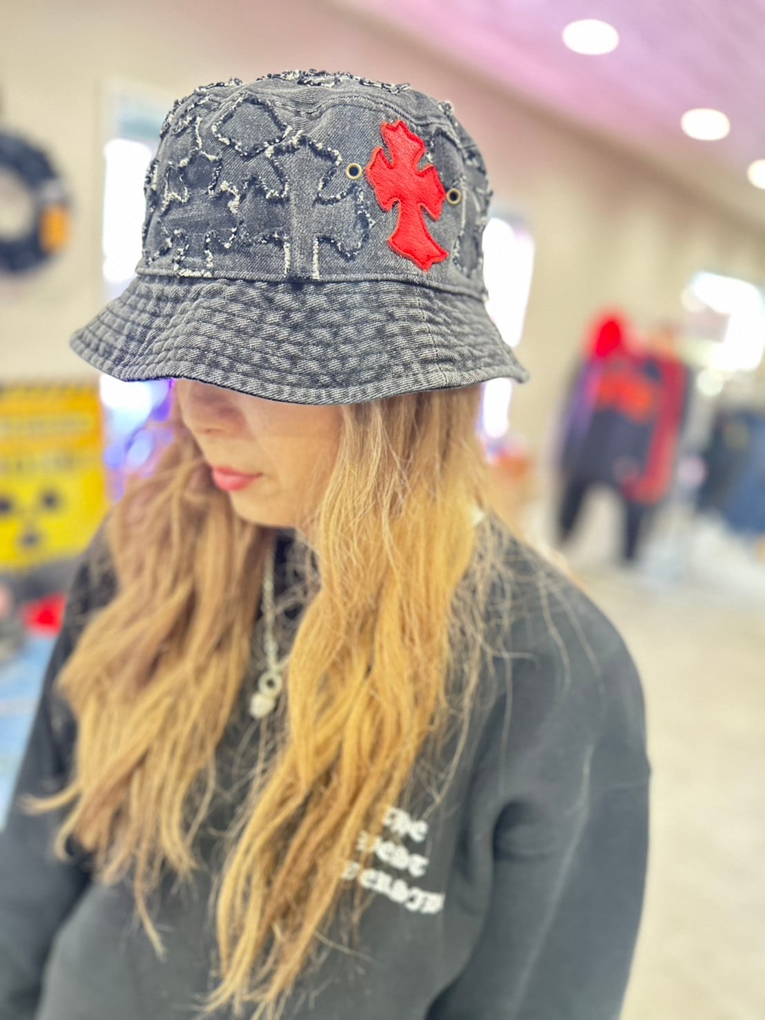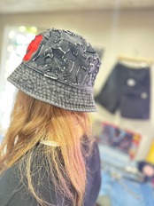 デニムリメイク クロスパッチ バケットハット