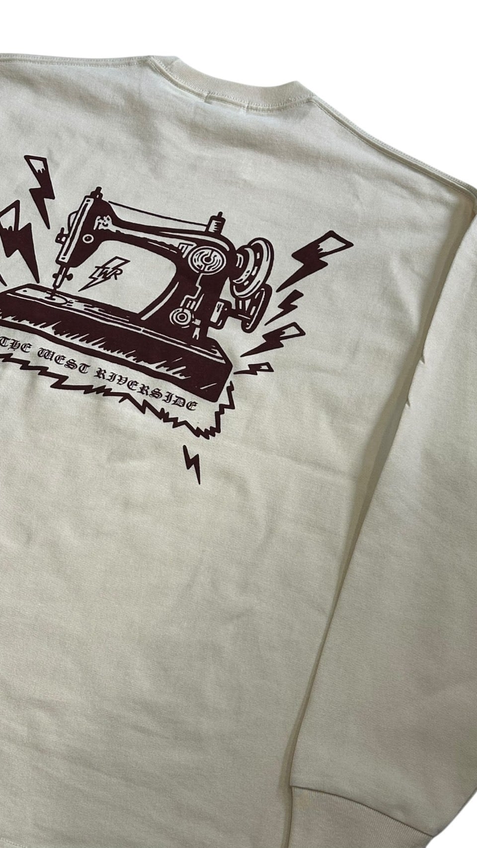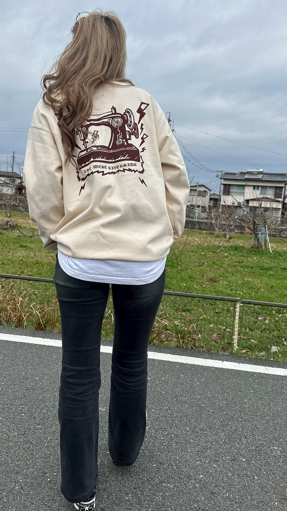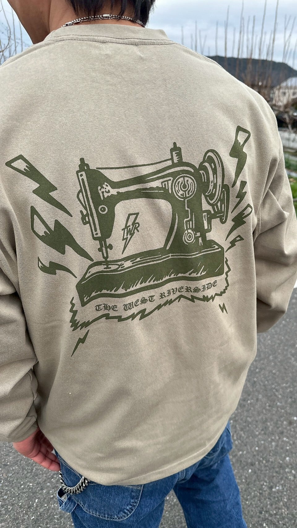 重厚なアンティークミシンに、エッジの効いたサンダーボルトをプラス。